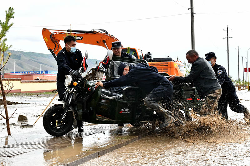 7月15日,新疆哈密市伊吾縣前山鄉(xiāng)出現(xiàn)雷雨天氣,隨后突降暴雨,17時10分許,由于降水量逐漸增大引發(fā)洪水,駐守在哈密市伊吾縣前山鄉(xiāng)的哈密邊境管理支隊伊吾邊境管理大隊前山邊境派出所立即啟動突發(fā)情況緊急預(yù)案,聯(lián)合當?shù)剜l(xiāng)政府出動9名民警,6名輔警和15名護邊員組成“黨員突擊隊”,攜帶救援工具趕往受災(zāi)嚴重的前山鄉(xiāng)中心村開展救援。