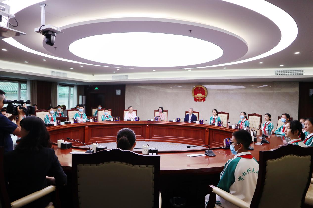 在“六一”國際兒童節(jié)來臨之際,5月30日,最高人民檢察院以“檢愛同行,共護花開”為主題,舉辦第41次檢察開放日活動。來自首都師范大學(xué)附屬中學(xué)、北京理工大學(xué)附屬中學(xué)、北京市第六十五中學(xué)的90余名師生和7位關(guān)心關(guān)注未成年人檢察工作的全國人大代表、全國政協(xié)委員,一起走進最高檢。