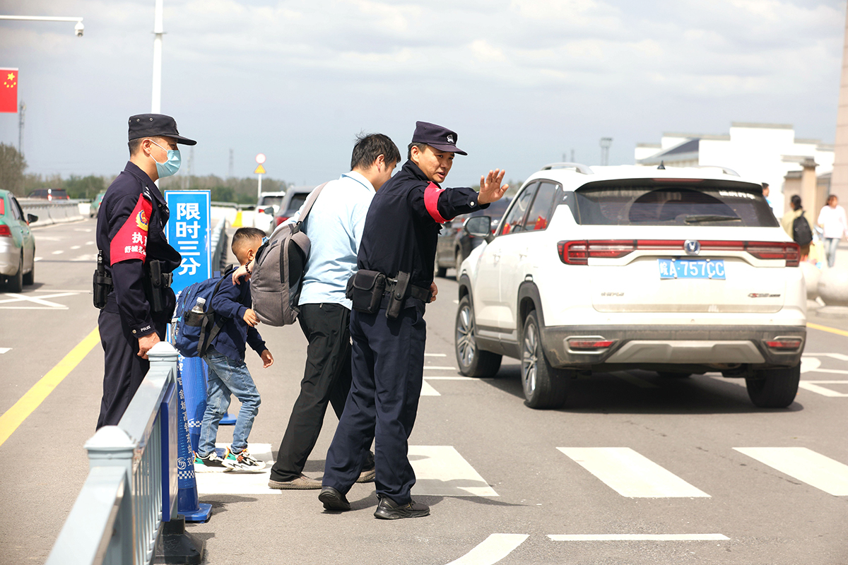 10月6日,安徽省舒城縣公安局千人橋派出所舒城高鐵東站警務(wù)站民輔警在疏導(dǎo)交通、服務(wù)旅客出行。當(dāng)天是中秋國(guó)慶假期最后一天,迎來返程旅客高峰。警務(wù)站全員上崗,及時(shí)做好車流、旅客引導(dǎo),確保旅客返程平安。