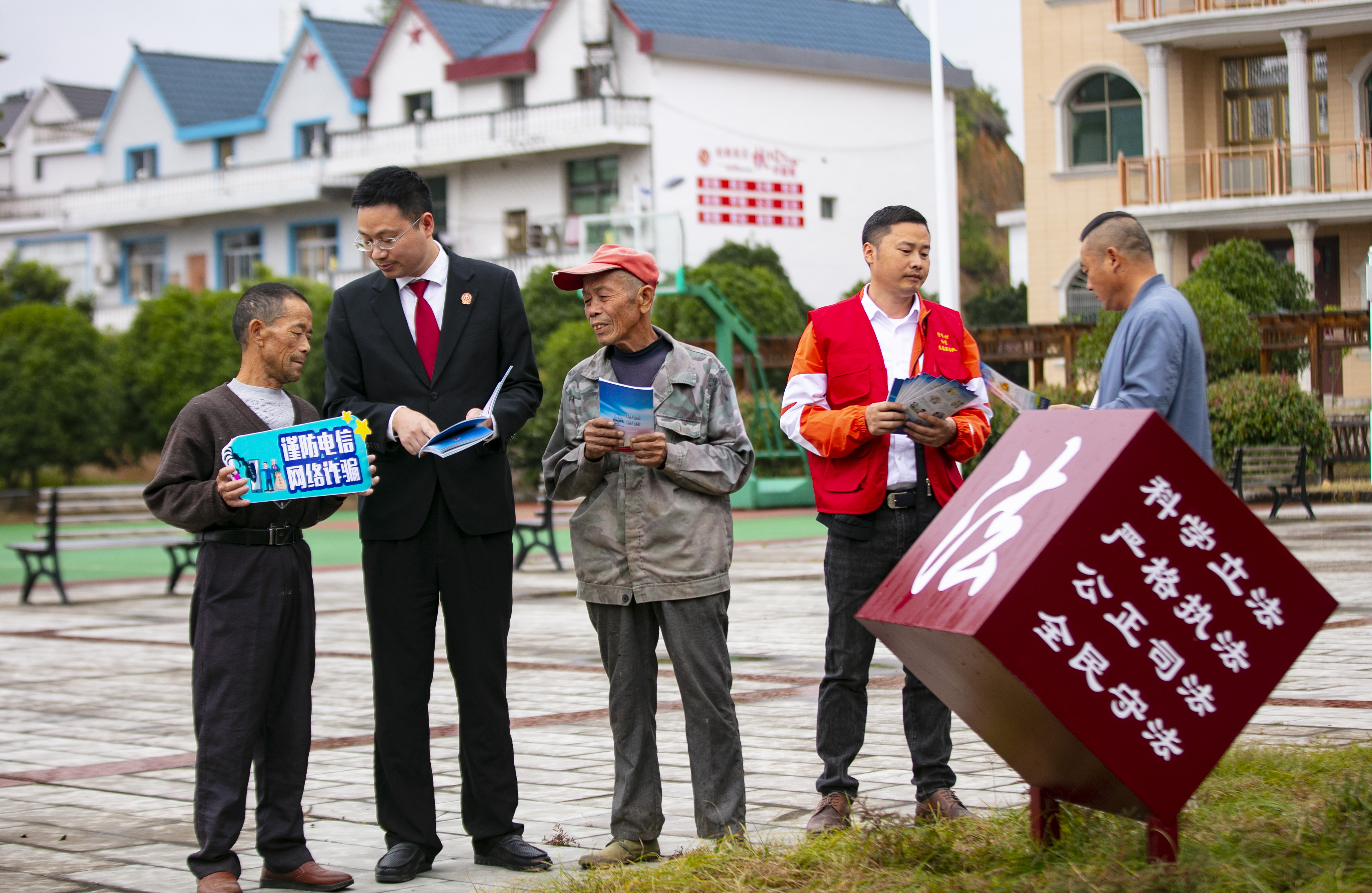 近日,江西省上饒市橫峰縣人民法院積極發(fā)揮“聯(lián)村法官+”機(jī)制在訴源治理中的作用,組織聯(lián)村法官到各鄉(xiāng)村開(kāi)展普法宣傳活動(dòng),通過(guò)設(shè)立法律咨詢點(diǎn)、開(kāi)展流動(dòng)宣講等形式,向村民宣傳法律法規(guī)和防詐騙知識(shí),引導(dǎo)村民學(xué)法、知法、守法、用法,從源頭上筑牢安全防范屏障。圖為聯(lián)村法官和網(wǎng)格員為村民開(kāi)展反詐普法宣傳。