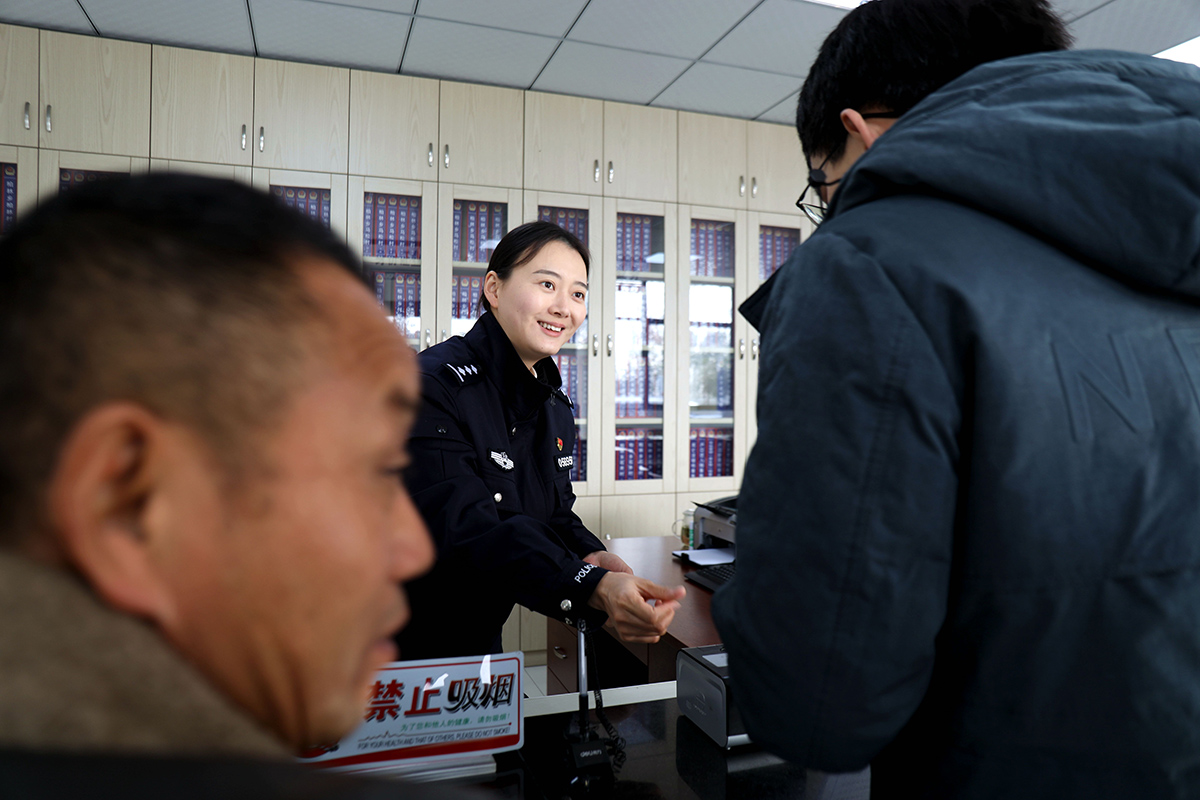 1月1日,安徽省舒城縣公安局柏林派出所戶籍窗口民警為群眾辦理戶籍業(yè)務(wù)。元旦假期,為方便回鄉(xiāng)群眾辦理戶籍業(yè)務(wù),該局認(rèn)真落實便民服務(wù)措施,開辟綠色“便民通道”,戶籍民警以貼心服務(wù),最大限度滿足轄區(qū)群眾需求。