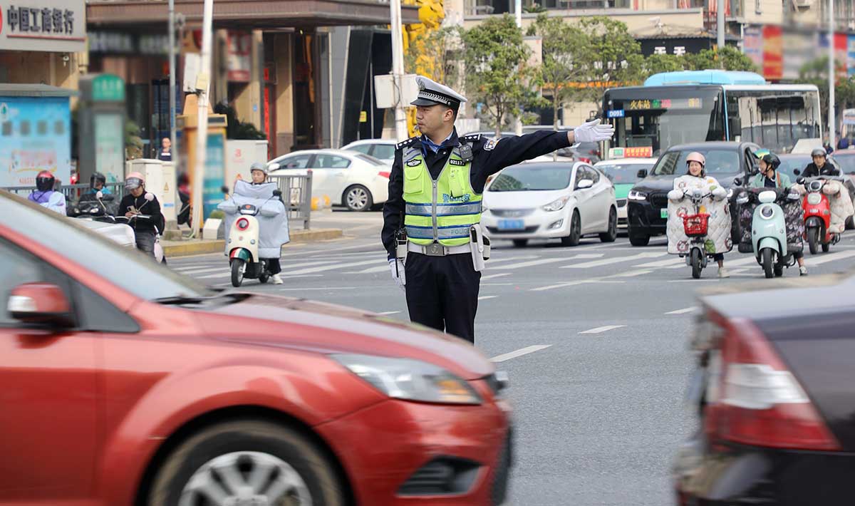4月6日,迎來清明節(jié)假期返程高峰,江西省九江市公安局交管支隊第一大隊民警輔警全員上崗,在重點路口路段加強警力,采取定點執(zhí)勤與流動巡邏相結(jié)合的方式,堅守在重要路段指揮疏導(dǎo)交通,確保返程車輛安全順暢。