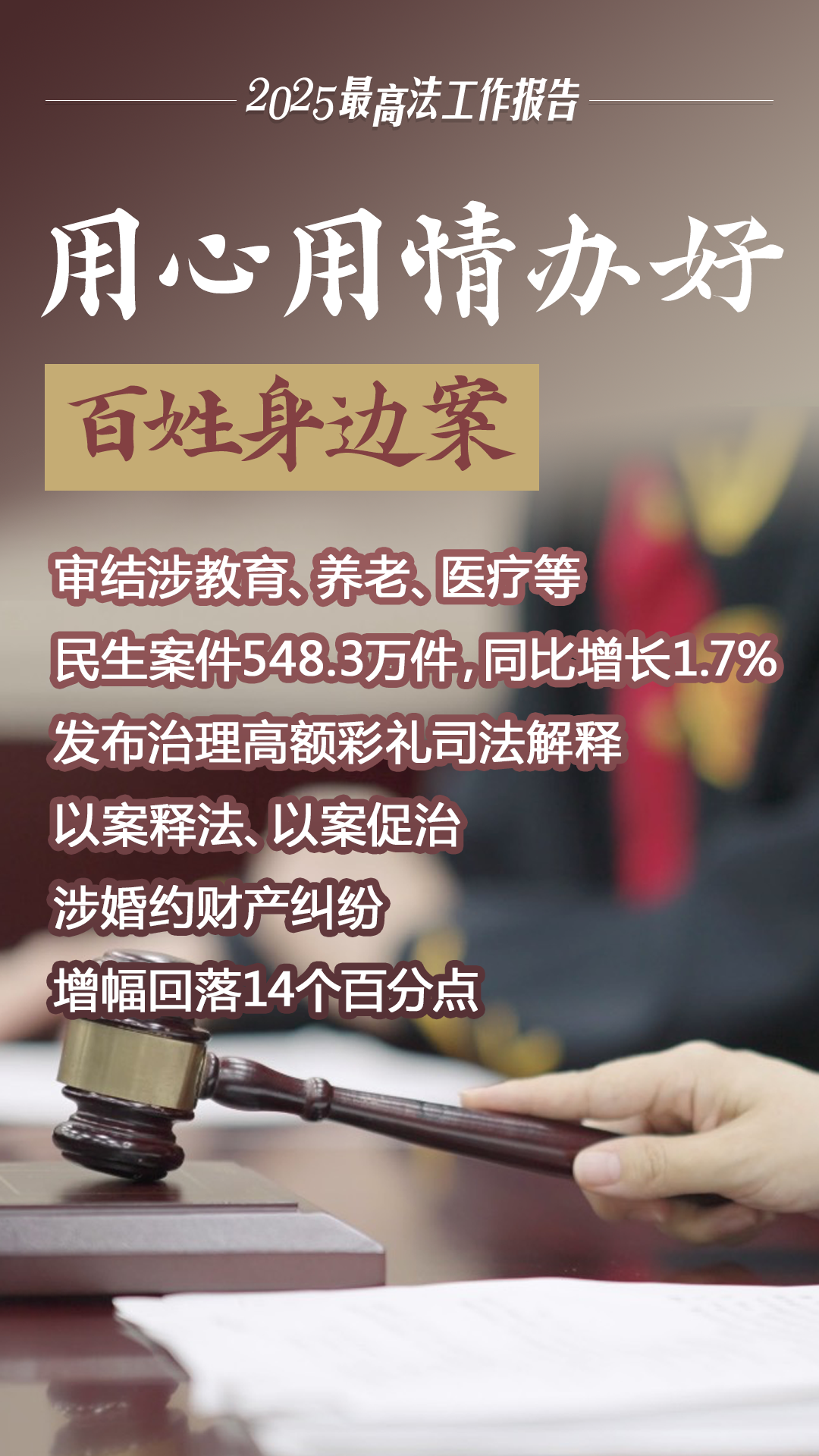 保障百姓安居樂業(yè),守護(hù)老年人幸福晚年,助力勞動者樂業(yè)安“薪”……3月8日,最高人民法院工作報告提請十四屆全國人大三次會議審議。民有所呼,我有所應(yīng)。2024年以來,全國法院堅持人民至上,聚焦百姓急難愁盼,以“如我在訴”意識辦好民生案,持續(xù)增強(qiáng)群眾對司法公正的獲得感。AI繪圖,帶你這樣看“法”。