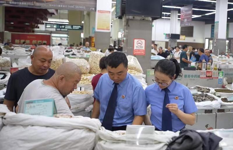 圖為亳州市譙城區(qū)檢察院檢察官在亳州中藥材交易市場(chǎng)進(jìn)行藥品質(zhì)量安全檢查。張哲 攝