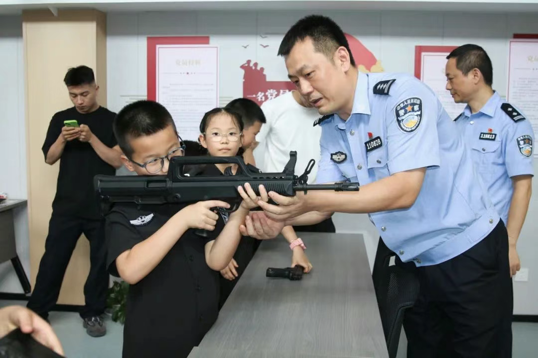 警務(wù)裝備展示環(huán)節(jié)更是讓孩子們大開眼界。警用無人機(jī)、AI眼鏡及各類警用槍支等平時(shí)只能在電視里看到的裝備一一呈現(xiàn)在眼前。