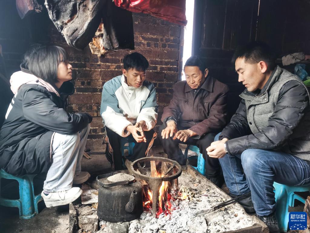 貴州省望謨縣實(shí)驗(yàn)高中黨總支副書記、副校長劉秀祥(右一)在學(xué)生家中家訪(2022年2月1日攝)。新華社發(fā)