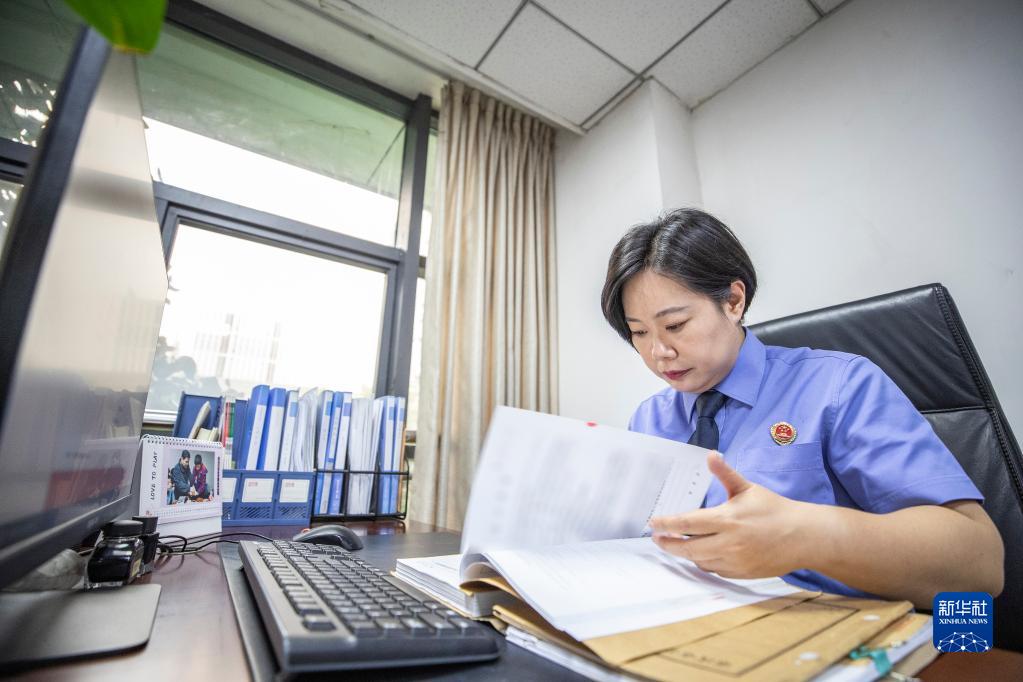 9月20日,在重慶市大渡口區(qū)人民檢察院,梅玫在辦公室內(nèi)查閱最近偵辦未成年案件的卷宗。新華社記者 黃偉 攝