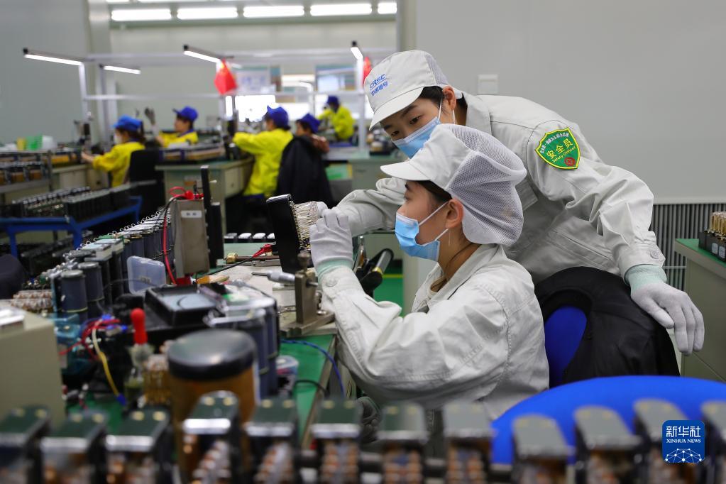 柯曉賓在沈陽(yáng)鐵路信號(hào)有限責(zé)任公司電器中心車(chē)間指導(dǎo)班組成員調(diào)試?yán)^電器(2022年9月7日攝)。新華社記者 楊青 攝