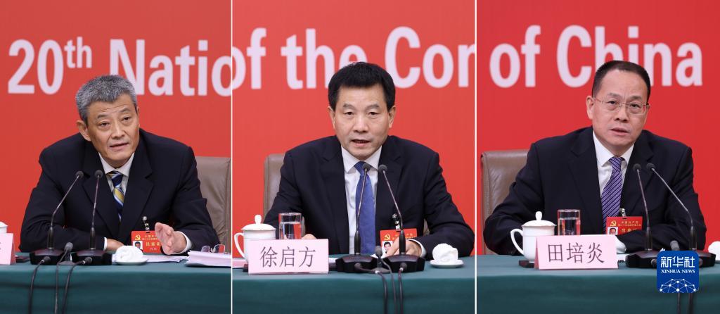 10月17日,中國共產(chǎn)黨第二十次全國代表大會(huì)新聞中心舉行記者招待會(huì),請(qǐng)中央紀(jì)委副書記、國家監(jiān)委副主任肖培,中央組織部副部長徐啟方,中央政策研究室副主任田培炎介紹堅(jiān)定不移全面從嚴(yán)治黨,深入推進(jìn)新時(shí)代黨的建設(shè)新的偉大工程有關(guān)情況,并回答記者提問(拼版照片)。