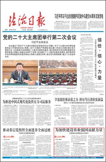 多位黨的二十大代表在接受《法治日?qǐng)?bào)》記者采訪時(shí)一致認(rèn)為,二十大報(bào)告對(duì)全面推進(jìn)鄉(xiāng)村振興作出重要部署,明確了新時(shí)代新征程上推進(jìn)農(nóng)業(yè)農(nóng)村現(xiàn)代化的重大任務(wù)。要按照二十大報(bào)告繪制的路線圖,扎實(shí)推動(dòng)鄉(xiāng)村產(chǎn)業(yè)、人才、文化、生態(tài)、組織振興,為加快建設(shè)農(nóng)業(yè)強(qiáng)國(guó)貢獻(xiàn)力量。