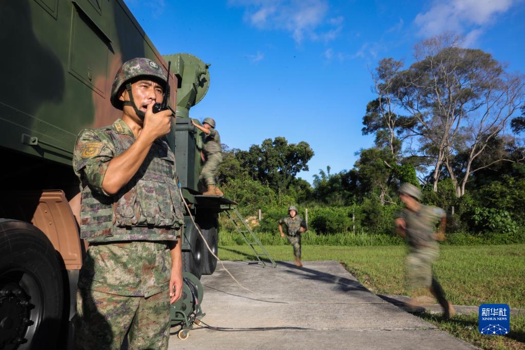 駐香港部隊(duì)某團(tuán)防空營(yíng)營(yíng)長(zhǎng)王海旭在防空陣地上指揮戰(zhàn)斗裝備進(jìn)入預(yù)定區(qū)域(2020年8月13日攝)。新華社發(fā)(田越洋 攝)