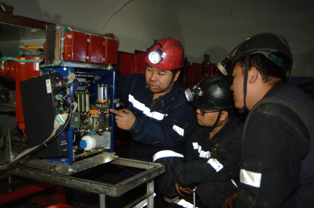 李杰在井下向工友傳授電氣設(shè)備維護技巧。