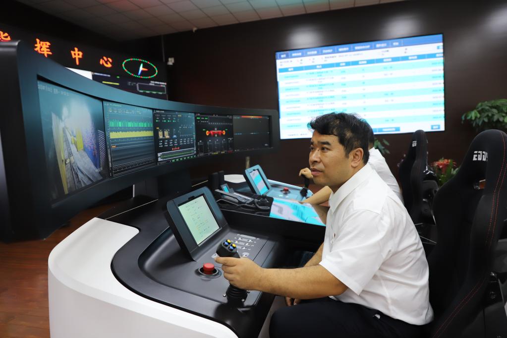 李杰在“太空艙”式綜采智能化控制系統(tǒng)前遠程操控井下設(shè)備。