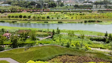 俯瞰一汪碧水,倒映其中,黃的、綠的、紅的花草在水中搖曳,魚兒游弋其間。初冬時節(jié),位于廣西南寧市興寧區(qū)三塘鎮(zhèn)的那考河濕地公園,幾公里長的河道沿岸,花海、濕地、碧水、散步的人,滿目和諧。