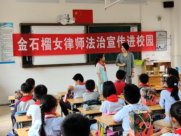 金石榴女律師一行走進(jìn)駱駝實驗小學(xué),為學(xué)生帶來一堂別開生面的法治課。