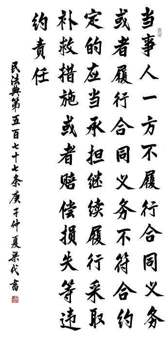 民法典第五百七十七條 當(dāng)事人一方不履行合同義務(wù)或者履行合同義務(wù)不符合約定的,應(yīng)當(dāng)承擔(dān)繼續(xù)履行、采取補救措施或者賠償損失等違約責(zé)任。