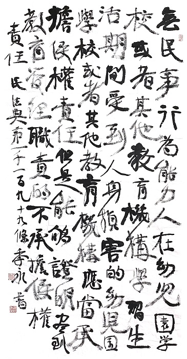 “書·法”活動(dòng)以書寫《中華人民共和國(guó)民法典》法條開筆,未來將對(duì)準(zhǔn)更多的法律。