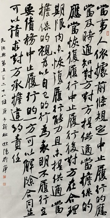 “書·法”活動(dòng)以書寫《中華人民共和國民法典》法條開筆,未來將對(duì)準(zhǔn)更多的法律。