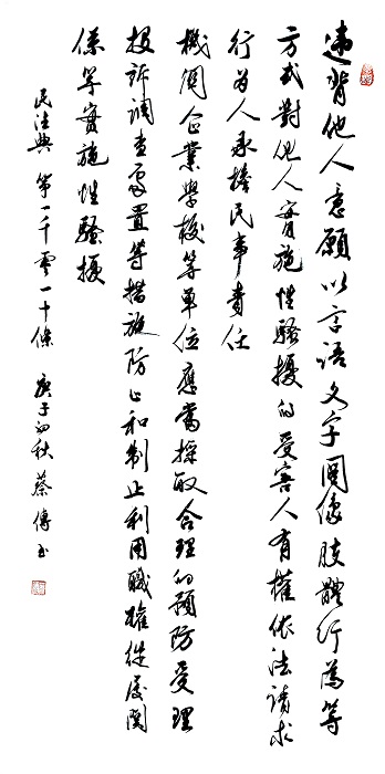 “書·法”活動以書寫《中華人民共和國民法典》法條開筆,未來將對準(zhǔn)更多的法律。