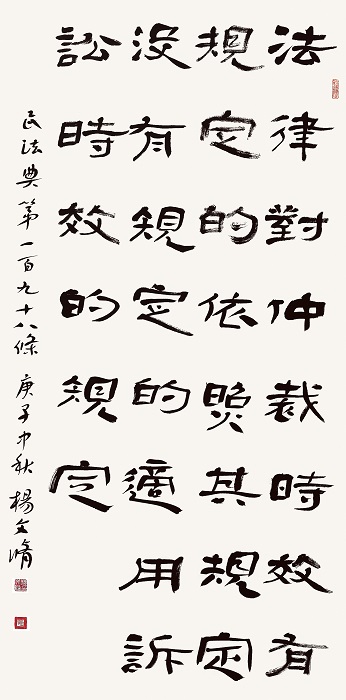 “書·法”活動以書寫《中華人民共和國民法典》法條開筆,未來將對準(zhǔn)更多的法律。