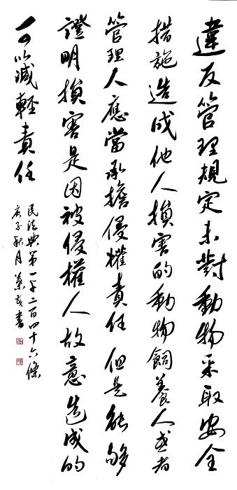 民法典第一千二百四十六條 違反管理規(guī)定,未對動物采取安全措施造成他人損害的,動物飼養(yǎng)人或者管理人應當承擔侵權責任;但是,能夠證明損害是因被侵權人故意造成的,可以減輕責任。