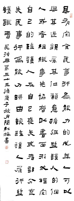 書法作品入展中國(guó)“祭侄文稿杯”書法篆刻展優(yōu)秀獎(jiǎng)(最高獎(jiǎng))、中國(guó)第四屆西部書法篆刻展等。