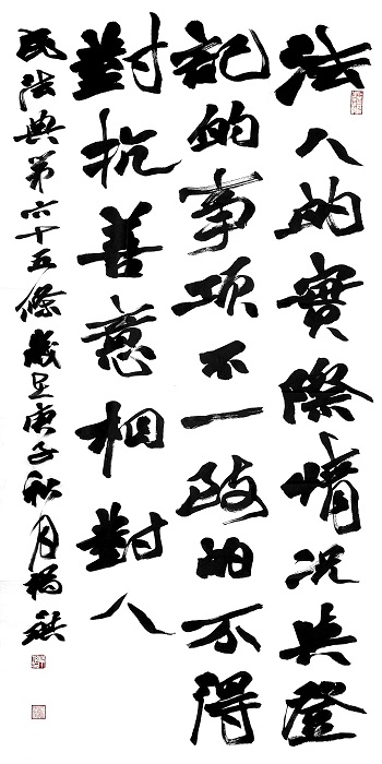 “書(shū)·法”活動(dòng)旨在為創(chuàng)新法治宣傳教育,多開(kāi)一點(diǎn)腦洞、多花一點(diǎn)心思、多出一點(diǎn)力量、多做一點(diǎn)貢獻(xiàn),引領(lǐng)和推動(dòng)更多的人拿起筆來(lái)學(xué)法、寫(xiě)法,在不斷“書(shū)·法”過(guò)程中,提升自身的法治素養(yǎng),在全社會(huì)弘揚(yáng)法治精神。