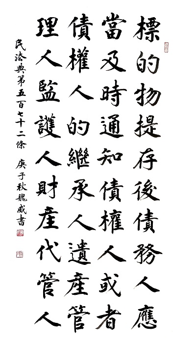 “書·法”活動旨在為創(chuàng)新法治宣傳教育,多開一點腦洞、多花一點心思、多出一點力量、多做一點貢獻,引領(lǐng)和推動更多的人拿起筆來學(xué)法、寫法,在不斷“書·法”過程中,提升自身的法治素養(yǎng),在全社會弘揚法治精神?!皶しā被顒右詴鴮憽吨腥A人民共和國民法典》法條開筆,未來將對準更多的法律。