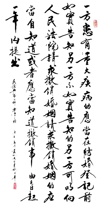民法典第一千零五十三條 一方患有重大疾病的,應(yīng)當(dāng)在結(jié)婚登記前如實告知另一方;不如實告知的,另一方可以向人民法院請求撤銷婚姻。