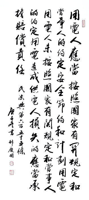 民法典第六百五十五條 用電人應(yīng)當(dāng)按照國家有關(guān)規(guī)定和當(dāng)事人的約定安全、節(jié)約和計(jì)劃用電。用電人未按照國家有關(guān)規(guī)定和當(dāng)事人的約定用電,造成供電人損失的,應(yīng)當(dāng)承擔(dān)賠償責(zé)任。