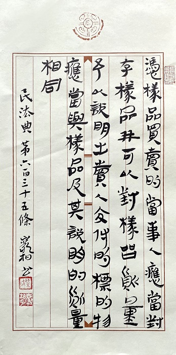 民法典第六百三十五條 憑樣品買賣的當(dāng)事人應(yīng)當(dāng)封存樣品,并可以對(duì)樣品質(zhì)量予以說明。出賣人交付的標(biāo)的物應(yīng)當(dāng)與樣品及其說明的質(zhì)量相同。