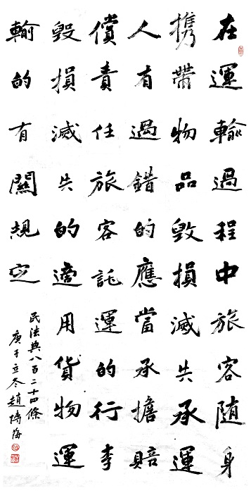 民法典第八百二十四條 在運輸過程中旅客隨身攜帶物品毀損、滅失,承運人有過錯的,應(yīng)當(dāng)承擔(dān)賠償責(zé)任。