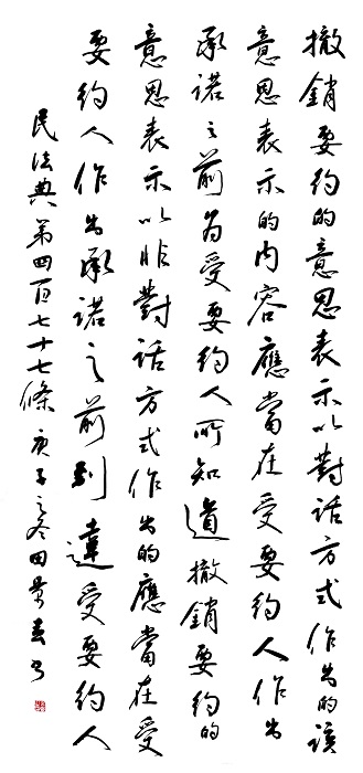 民法典第四百七十七條 撤銷要約的意思表示以對話方式作出的,該意思表示的內(nèi)容應當在受要約人作出承諾之前為受要約人所知道;撤銷要約的意思表示以非對話方式作出的,應當在受要約人作出承諾之前到達受要約人。