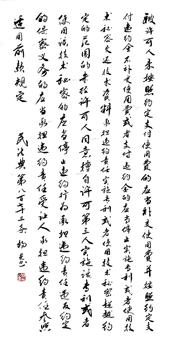 民法典第八百七十三條 被許可人未按照約定支付使用費的,應當補交使用費并按照約定支付違約金;不補交使用費或者支付違約金的,應當停止實施專利或者使用技術秘密,交還技術資料,承擔違約責任;實施專利或者使用技術秘密超越約定的范圍的,未經許可人同意擅自許可第三人實施該專利或者使用該技術秘密的,應當停止違約行為,承擔違約責任;違反約定的保密義務的,應當承擔違約責任。