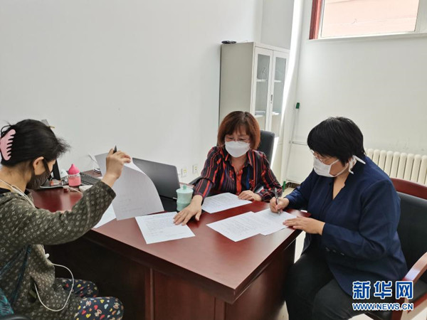天津市和平區(qū)信訪事項人民調(diào)解委員會主任王玉珍(中)對雙方當事人進行調(diào)解(2020年5月13日手機拍攝)。新華社發(fā)