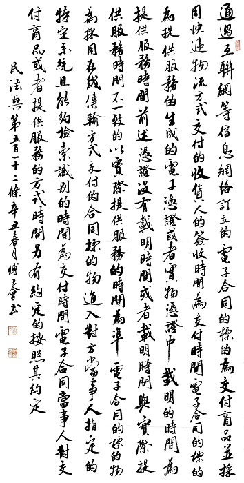 “書·法”活動以書寫《中華人民共和國民法典》法條開筆,未來將對準(zhǔn)更多的法律。