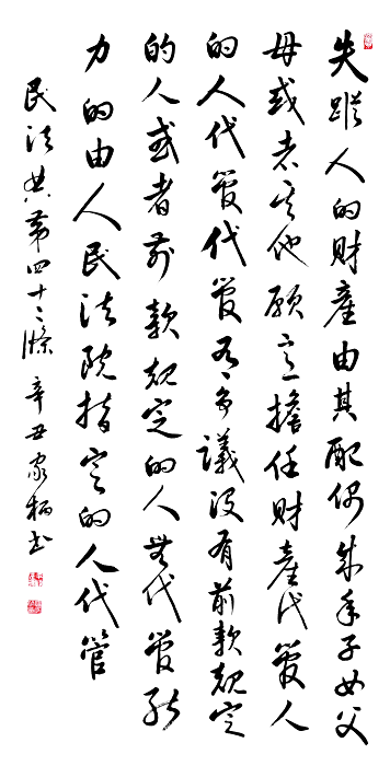 民法典第四十二條 失蹤人的財產(chǎn)由其配偶、成年子女、父母或者其他愿意擔任財產(chǎn)代管人的人代管。