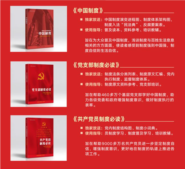 李鐵教授的制度學(xué)系列叢書分為法制篇——《中國政治制度》《中國經(jīng)濟(jì)制度》《中國文化制度》《中國社會制度》《中國生態(tài)文明制度》《黨內(nèi)法規(guī)制度》《中國軍事制度》《中國法治制度》《中國農(nóng)業(yè)制度》《中國科技制度》,自信篇——《5000年制度歷程》《中國制度》《黨支部制度必讀》《共產(chǎn)黨員制度必讀》《中國科舉制度》《中國文官制度》《中國法律制度》《中國行政制度》《把權(quán)利關(guān)進(jìn)制度的籠子》,創(chuàng)新篇——《中國民法典與中國制度》《百年制度豐碑》等等。