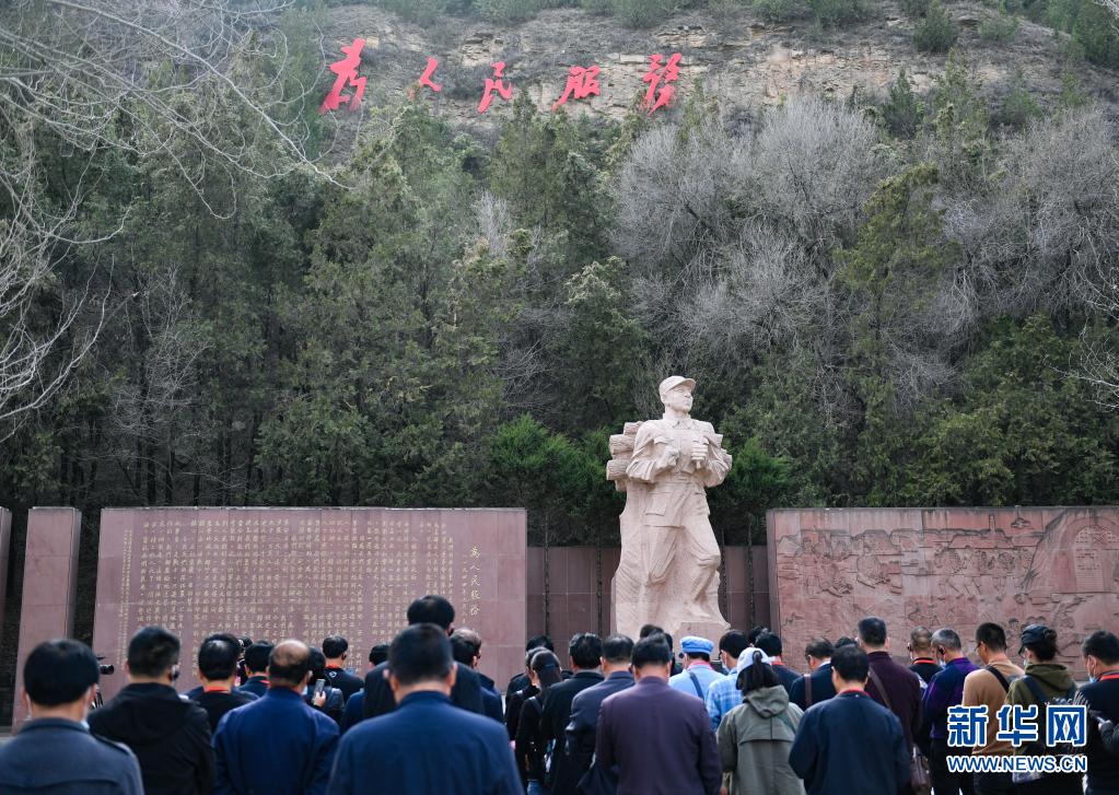 黨員干部在延安市張思德廣場進(jìn)行現(xiàn)場教學(xué)活動(3月29日攝)。新華社記者 張博文 攝