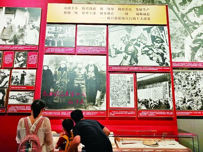 延安時(shí)期,黨在領(lǐng)導(dǎo)邊區(qū)法治建設(shè)的過程中,進(jìn)行了歷史性探索。《陜甘寧邊區(qū)施政綱領(lǐng)》成為抗戰(zhàn)時(shí)期邊區(qū)的根本大法?!包S克功案件”的審判,彰顯了從嚴(yán)治黨、從嚴(yán)治軍的決心?!榜R錫五審判方式”的確立,為新民主主義司法制度注入了新鮮血液,也為新中國(guó)司法制度的建立提供了有益經(jīng)驗(yàn)。圖為觀眾在參觀抗日根據(jù)地建設(shè)有關(guān)情況。