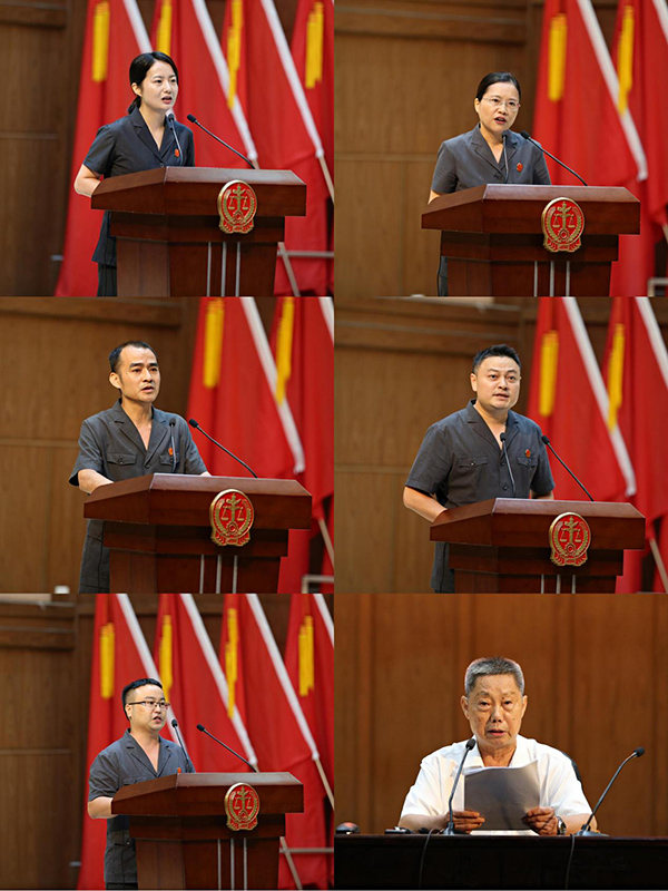 報(bào)告會(huì)上,5名英模事跡報(bào)告團(tuán)成員作報(bào)告。報(bào)告團(tuán)成員有2名是湖南法院英模生前戰(zhàn)友,3名是湖南法院優(yōu)秀法官代表。湖南高院民一庭法官助理龍菲深情追憶湖南高院審監(jiān)一庭原副庭長、“全國模范法官”“全國三八紅旗手”“湖南省優(yōu)秀共產(chǎn)黨員”周春梅同志用生命捍衛(wèi)公平正義的英雄事跡。湖南高院民三庭副庭長陳小珍深情講述了她的同事徐康同志深耕審判業(yè)務(wù),始終躬行為民的感人事跡?!叭珖鴥?yōu)秀法官”、長沙中院民三庭副庭長何豪杰講述了自己遵循“堂堂正正做人,明明白白辦事”的行為準(zhǔn)則,求真務(wù)實(shí)、依法公正辦案的感人故事?!叭珖鴥?yōu)秀法官”、“全國法院十大亮點(diǎn)人物”、“湖南省優(yōu)秀青年衛(wèi)士”、湘潭縣法院刑事審判庭庭長崔贛講述了自己堅(jiān)守基層一線、踐行使命擔(dān)當(dāng)、守護(hù)一方平安的動(dòng)人事跡?!叭珖ㄔ喝嗣穹ㄍスぷ飨冗M(jìn)個(gè)人”、“全國法院辦案標(biāo)兵”、湘西龍山縣人民法院刑事審判庭庭長田代飛以《土家山寨的“喳西呔”》為題講述了自己經(jīng)過不懈努力,讓法律走進(jìn)老百姓的生活,在每一起案件的公正審判與耐心調(diào)解中,滿足人民群眾對(duì)公平正義期待的感人事跡。