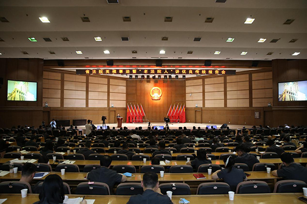 報(bào)告會(huì)還邀請了“老法院人”代表吳政祥講優(yōu)良傳統(tǒng)。吳政祥以生動(dòng)的故事、質(zhì)樸的話語講述了他在湖南省法院審判一線不忘初心、牢記使命的奮斗歷程。他勉勵(lì)青年干警要樹立遠(yuǎn)大理想和抱負(fù),練就健康體魄,珍愛自己的職業(yè)、榮譽(yù)和家庭,珍惜國家和人民賦予的審判執(zhí)行權(quán)力,為湖南法院審判執(zhí)行事業(yè)高質(zhì)量發(fā)展貢獻(xiàn)力量,成為忠誠干凈擔(dān)當(dāng)?shù)暮戏ㄔ鸿F軍中的一員。