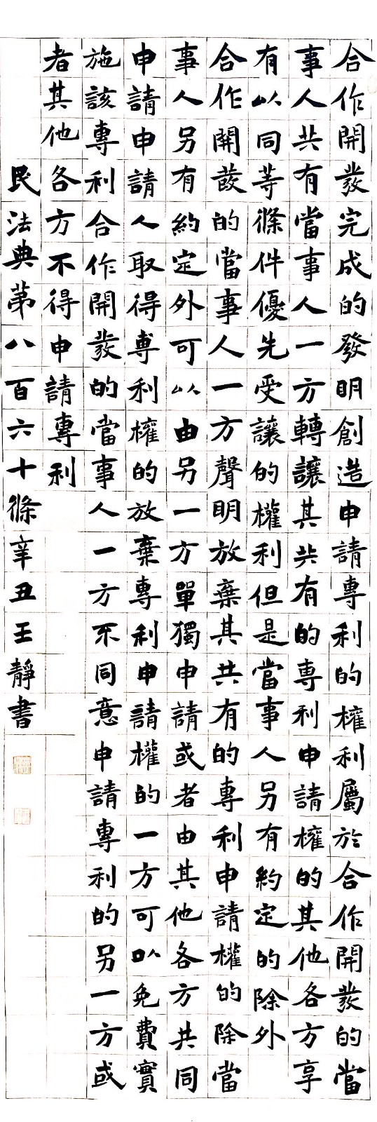 民法典第八百六十條 合作開發(fā)完成的發(fā)明創(chuàng)造,申請(qǐng)專利的權(quán)利屬于合作開發(fā)的當(dāng)事人共有;當(dāng)事人一方轉(zhuǎn)讓其共有的專利申請(qǐng)權(quán)的,其他各方享有以同等條件優(yōu)先受讓的權(quán)利。但是,當(dāng)事人另有約定的除外。
