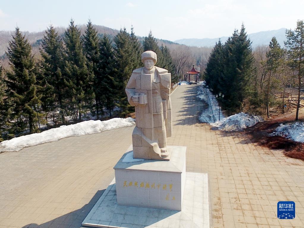 矗立在吉林省靖宇縣楊靖宇將軍殉國(guó)地的楊靖宇雕像(2017年3月22日攝)。新華社記者 曾濤 攝