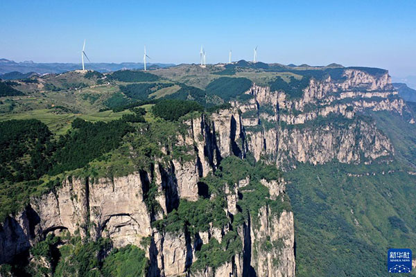這是2021年9月8日在山西省平順縣玉峽關(guān)鎮(zhèn)拍攝的太行山風光(無人機照片)。新華社記者 詹彥 攝