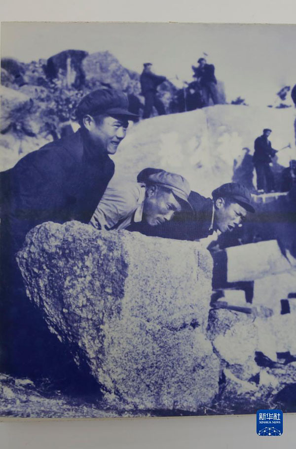 這是3月23日在山東省臨沂市莒南縣坪上鎮(zhèn)厲家寨村村史館拍攝的厲家寨人當(dāng)年大戰(zhàn)“窮山惡水”的歷史照片。新華社記者 王凱 攝