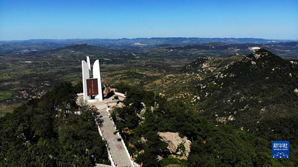 這是位于山東省臨沂市蒙陰縣的孟良崮戰(zhàn)役戰(zhàn)場遺址(2019年8月29日攝,無人機照片)。新華社記者 王凱 攝