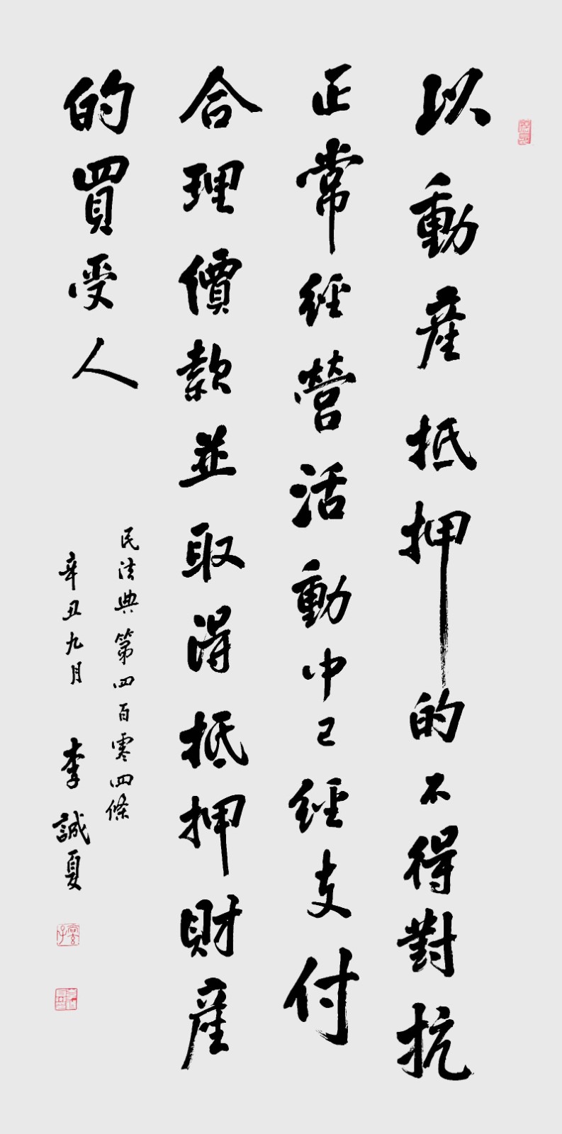 民法典第四百零四條 以動(dòng)產(chǎn)抵押的,不得對(duì)抗正常經(jīng)營(yíng)活動(dòng)中已經(jīng)支付合理價(jià)款并取得抵押財(cái)產(chǎn)的買受人。