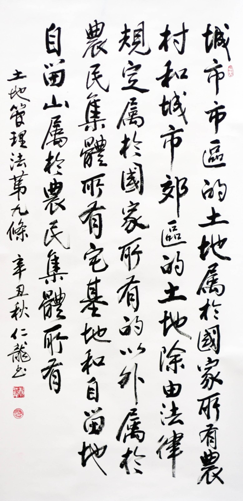 繼1600余位書法家參與書寫《中華人民共和國民法典》全部1260條法條之后,法治日報社聯(lián)合自然資源部法規(guī)司、自然資源部書畫研究會和北京昌平書法家協(xié)會,將筆端對準土地管理“一法一條例”,即《中華人民共和國土地管理法》和《中華人民共和國土地管理法實施條例》。