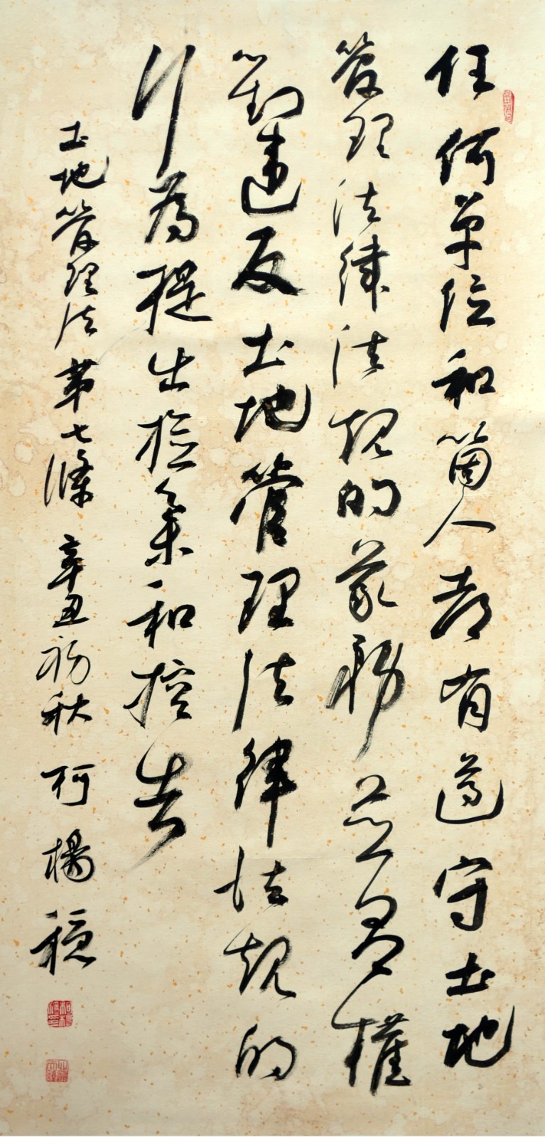 繼1600余位書法家參與書寫《中華人民共和國民法典》全部1260條法條之后,法治日?qǐng)?bào)社聯(lián)合自然資源部法規(guī)司、自然資源部書畫研究會(huì)和北京昌平書法家協(xié)會(huì),將筆端對(duì)準(zhǔn)土地管理“一法一條例”,即《中華人民共和國土地管理法》和《中華人民共和國土地管理法實(shí)施條例》。